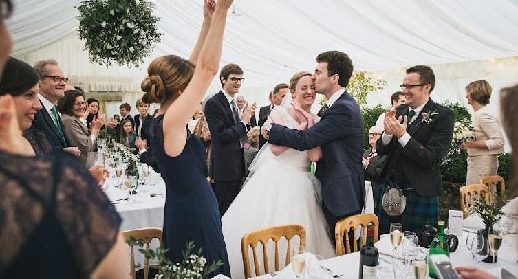 After the marriage , a reception is held where the bride and therefore the groom perform a rehearsed ballroom dancing sequence. This is followed by a family dinner when the marriage cake is cut, and toasts are raised for the newly-wed couple.
