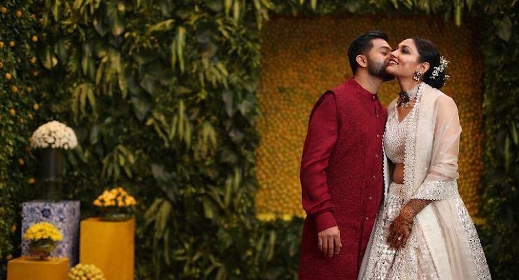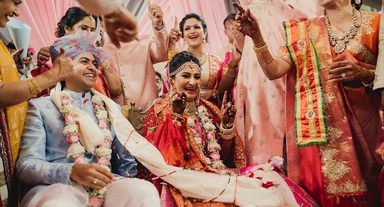 The priest then unites the two by knotting the groom’s shawl with one end of the bride’s saree while chanting songs from sacred scriptures.